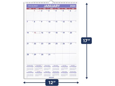 AT A GLANCE 2024 Monthly Wall Calendar Medium 12 x 17 Wall