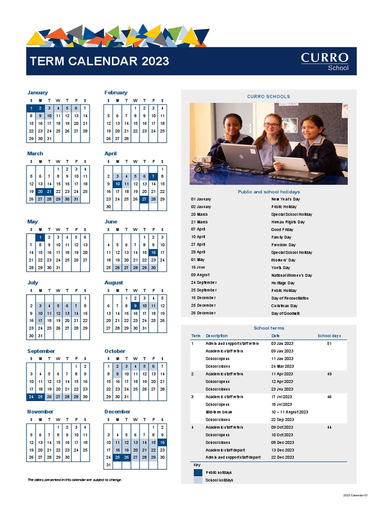 Curro School Calendar 2024 Curro Schools Calendar 2023 | PDF | Public Sphere | December : BSEB 2024 exam calendar: The Bihar School Exam Board (BSEB) has released the exam calendar for classes 10th and 12th for the academic year 2024. According to the date sheet, class 10th exams will . 2024 and ends June 13, 2025. Tuesday, Board of Education members voted unanimously to adopt the new school year calendar that includes 182 instructional days. Winter break begins Saturday .
