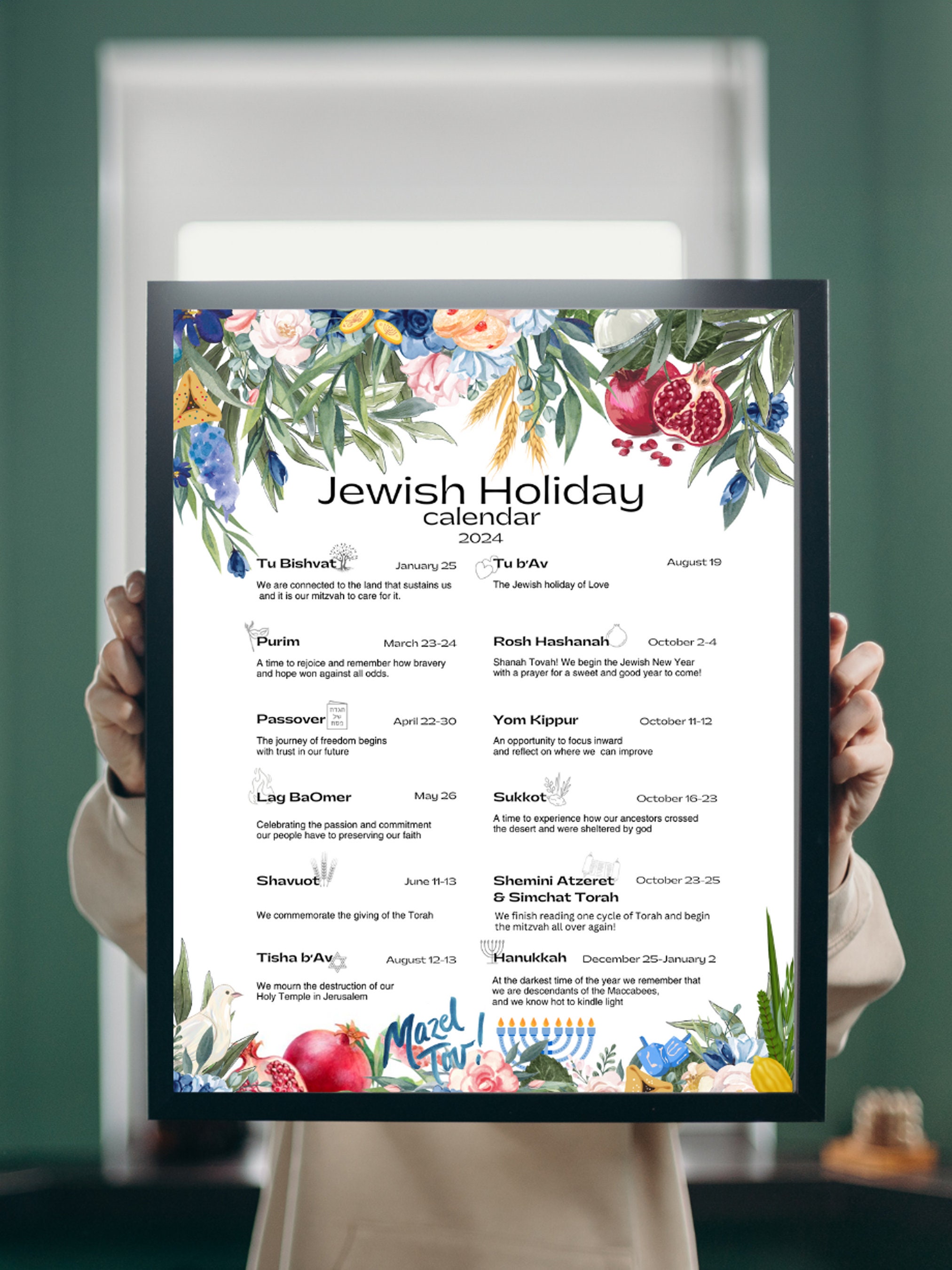 Jewish Holiday Calendar 2024 Hebrew Calendar (Download Now) Etsy